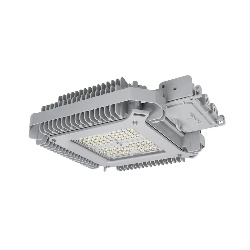 The product lineup includes floodlights, high-bay fixtures, wall packs, linear strip lights, exit and emergency signage, and explosion-proof luminaires for specialized applications.