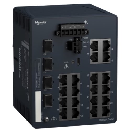 These switches are built to international standards and work smoothly with Schneider's traditional and digital ecosystem devices. As industrial connectivity and digitalization grow, Schneider Electric Ethernet switches serve as vital components for Industry 4.0. They allow disparate systems to communicate over a single network and provide the flow of information between connected devices that is necessary for modern enterprise computing. Whether a switch is used to connect tens of thousands of field devices to upper-level controls in a smart factory, to connect lower-level controls to smart meters in a water treatment facility, or to serve as an upper-level switch in an infrastructure system, connected devices can rely on its performance.