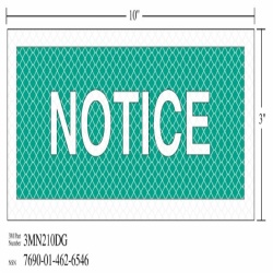 3M 7010389830 - 3M Diamond Grade™ Safety Sign 3MN210DG, "NOTICE", 10 in x 3 in