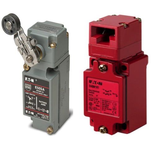 Eaton limit switch families include both micro and large body styles as well as compact sealed and corrosion-resistant switch designs. Their position feedback reliability makes them ideal for applications such as part registration, travel detection, end-of-travel sensing, door interlocks, material handling, and sequencing or event confirmation in machine controls. This has lead Eaton limit switches to be commonly ordered for motor driven devices, packaging machinery, material handling, industrial doors, and robotics.