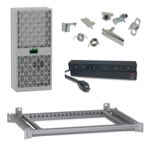 Fans, ventilation kits, heaters, and climate control components help regulate temperature and reduce moisture buildup inside enclosures.