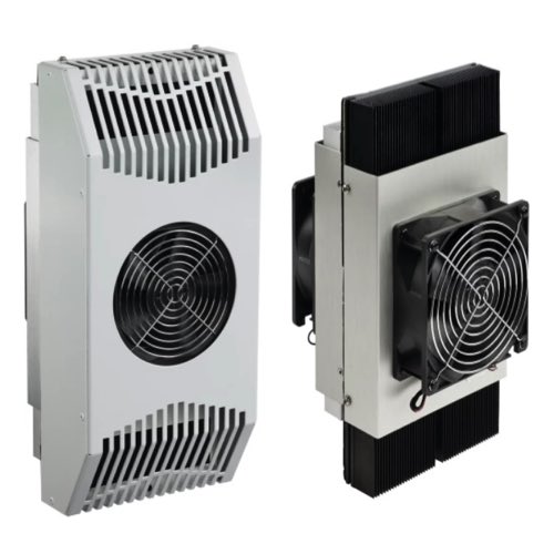 A thermoelectric cooler is used to regulate enclosure temperature using solid-state Peltier technology, protecting sensitive electrical and electronic components from heat without compressors or refrigerants.