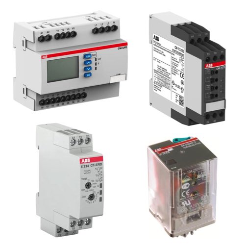 ABB offers a wide variety of relays, timers, and counters used in the industrial control, automation, and electrical power industries. Their relay line includes general purpose relays (GPRs), solid-state relays (SSRs), and interface relays used to provide reliable switching and isolation between the control logic and higher power electrical circuits. ABB relays are used in control panels, safety circuits, motor starters, signal interfaces, and other applications that require high reliability and robust electrical performance.