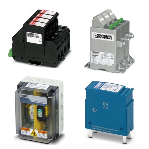 Surge protection Phoenix Contact's surge protection products absorb and divert voltage transients to protect equipment from damage. They are applied at service entrances, power distribution panels, control panels, automation cabinets, as well as on PLCs, HMIs, power supplies, drives, communication devices, and other sensitive electronic devices. They are designed to rapidly respond to voltage transients and help to eliminate equipment failures and downtime.