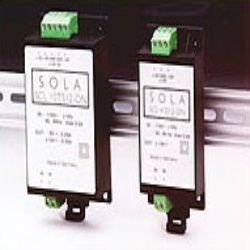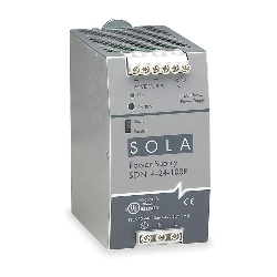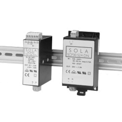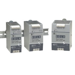 Sola SFL DIN rail switching power supplies complements the SDN products with more input voltage, output voltage and power levels to provide a broader range of industrial DC power solutions. They are available in 12, 24 and 48 VDC output and 115/230 VAC input. These power supplies can be mounted directly to the production line, thus enabling flexible design and reducing complexity and cost.