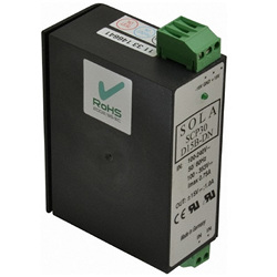 Sola SCP 30 Watt single, dual, and triple series switchers are compact power supplies designed to power industrial control and instrumentation devices with high reliability and tight regulation. The encapsulated design meets IP20 specifications and the wide range of voltages support almost all low-power devices. These switchers meet specific requirements for industrial control and instrumentation devices. They can be DIN rail or chassis mounted and the terminations are easy to access and wire.