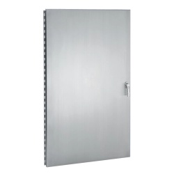 Steel enclosure doors are commonly used in indoor and general industrial applications where durability and structural integrity are required. Stainless steel enclosure doors, available in 304 and 316 grades, are suited for corrosive, washdown, and outdoor environments. These doors are often used in food processing, chemical facilities, marine applications, and other settings where resistance to moisture, chemicals, and contaminants is essential. Many options are rated for NEMA Type 4X protection, helping maintain enclosure integrity in demanding conditions. Enclosure doors are available in multiple configurations, including hinged designs for convenient access and gasketed options for enhanced sealing. Integrated door latches are an essential feature, allowing doors to remain securely closed while still providing reliable access for maintenance and inspection.