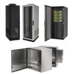 Network cabinets assist with cable management, thermal cooling, vibration reduction, security, and long-term network or system maintainability. As a rule, most network cabinets are a standard 19" width (rack-mount) to fit all common IT gear. Heights/widths vary and larger enclosures are always available for enterprise/server applications. They come both as solid 4-post open frames and as enclosed with doors and sides panels. Because heat, dust, moisture and electrical grounding all play a role in uptime, cabinets often include grounding studs, mounting points for fans, dust filters and other accessories.