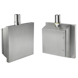 nVent Hoffman stainless steel SYSPEND sanitary enclosure is made of 18 gauge Type 304 stainless steel and is designed to house process control equipment in sanitary wash down environments. The enclosure meets Type 4X and IP69K requirements for high-temperature, high-pressure wash down applications. The 20 degree sloped top allows for runoff of water and cleaning solutions and the integrated side handles allow for easy repositioning of the enclosure. The enclosure can be mounted on a pendant or pedestal and a suspension arm adaptor is included.