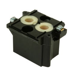 Coil activation can be manual or automatic. Manual activation happens when a button is pushed or switch is flipped. Automatic activation happens when a sensor or timer is switched under preset conditions. When the coil is activated or energized, a magnetic coupling occurs between the contacts and contact carrier, allowing them to stay together and current to flow to the motor or load. When the system is shut-off by de-energizing the coil, a spring causes the contacts to separate and stop the flow of power through the contacts, turning off the motor or load.