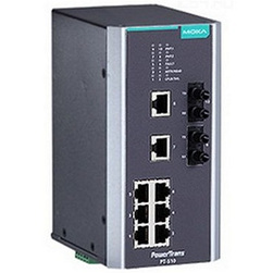 Moxa PT-7710 is designed for power substation automation systems and railway applications. The PT-7710’s Gigabit and Fast Ethernet backbone, redundant ring, and 12/24/48 VDC redundant power inputs increase the reliability of the communications and reduce cabling and wiring costs.