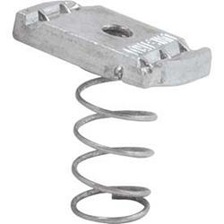 A typical strut channel forms a 1 5/8” by 1 5/8” box and is made from either 12 gauge or 14 gauge sheet metal. The lip of the strut channel is used to mount special braces, connecting angles or nuts to join lengths of strut channel together or to connect wire, pipes or other structures to the strut channel system. Objects can be attached to the strut channel with Unistrut hardware such as a channel nut, spring nut or bolt. Circular objects such as cables or pipes can be attached with straps.