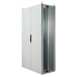 nVent Hoffman PROLINE industrial enclosure packages provide ready-to-use solutions that eliminate the need to order individual components. Standard packages include frames, solid doors, tops, gland plates, full subpanels, and lifting hardware under a single part number. PROLINE G2 seismic-rated packages offer additional protection for installations requiring resistance to Zone 4 seismic activity, while PROLINE-DD modular disconnect enclosures allow one- or two-door units to be bolted together for flexible system layouts. Rittal modular enclosure bays further expand options with complete NEMA Type 12 steel enclosure systems designed for reliable indoor industrial use.