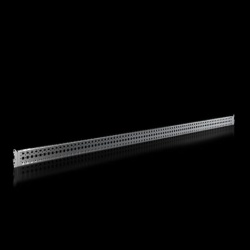 Hoffman PROLINE side barrier panels are used between frames to block airflow and provide security between ganged PROLINE cabinets. The barriers fasten to one frame and allow fasteners to secure adjoining frames.