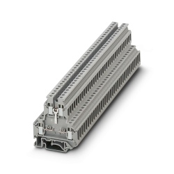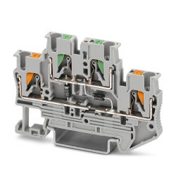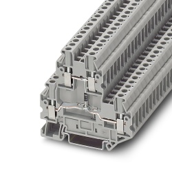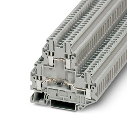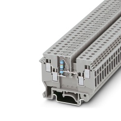Multilevel Terminal Blocks are used to connect two wires together with a common junction point, just like single pass though terminal blocks, but with the advantage of making two electrical connections in the same block. These blocks also incorporate fuses and can be grounded.