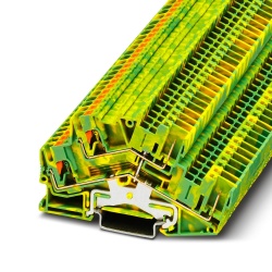 Multilevel Terminal Blocks are used to connect two wires together with a common junction point, just like single pass though terminal blocks, but with the advantage of making two electrical connections in the same block. These blocks also incorporate fuses and can be grounded.