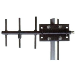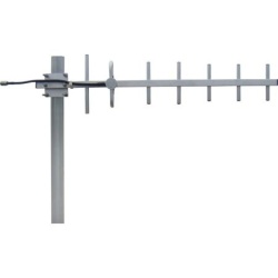 Yagi directional antennas have a narrow bandwidth and directional property that allows them to achieve forward gain. This means that they can take the signal coming from the direction that they are pointed and amplify it while taking everything else that is not coming from that direction and minimizing it. That makes them great in environments like rural America, where you have a couple of towers and you're trying to get signals bounced off of those and some different kinds of obstacles. Mounted on a structure out in the field, Yagi antennas can be pointed toward the terrain in front of them to try to get the best signals while avoiding some other kinds of interference that might come from the sides or above or below the antenna.