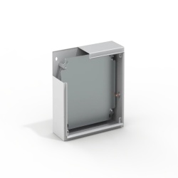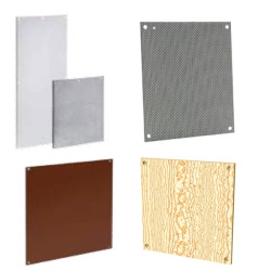 Enclosure backplates and panels are offset from the back of the enclosure allowing electrical devices to be mounted without compromising the integrity or NEMA rating of the enclosure. Most back panels come with pre-cut holes to match the mounting holes in the enclosure. These interior panels can also be removed or replaced, allowing the components to be easily worked on, without uninstalling the entire electrical cabinet. Back panels are made of steel, fiberglass, aluminum, wood, galvanized steel, painted steel, as well as composite materials. Enclosure swing out panels can be mounted near the front of the enclosure for easy access to switches, gauges, pilot lights and other components that need to read or adjusted.
