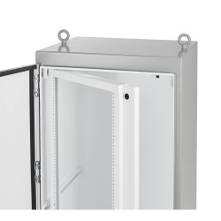 Internal swing out panels are used to mount and protect electrical equipment, rather than mounting the equipment to the outside door of an enclosure. A good way to think of a swing out panel, is to consider it as a second door on an enclosure.