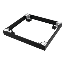 Plinth bases consist of eight corner supports connected to four access panels and are installed under an enclosure to provide space for cables to enter from below.