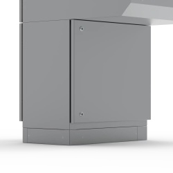 nVent Hoffman Universal Keyboard Trays can be mounted on any vertical enclosure surface and can be closed and locked for extra security. Drawing Desks fold away flush with the frame of a floor standing enclosure and provide a stable working surface. nVent Hoffman Front/Rear Plinths are mounted underneath enclosures to create extra space between the floor and the bottom of the enclosure for installing cables. The space is accessible by removing the front or rear panel.