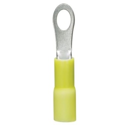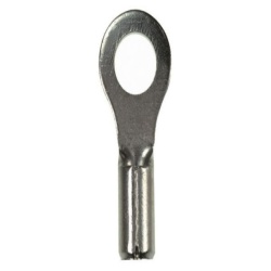Ring terminals are used to connect or terminate a single wire. The round end of the ring terminal makes an electrical connection with the help of a stud or a screw. The ring terminal is positioned over the circuit point where the flat surface of the ring makes the electrical connection. The screw is inserted into the circuit point, while going through the center of the ring terminal, and tightened into place.