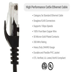 Cable CAT5E1000BK Bulk Ethernet Cable - Cat 5E, 1000', PVC, 24 AWG, 350 Mhz, Black