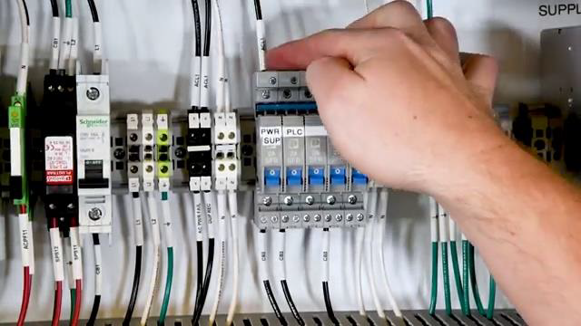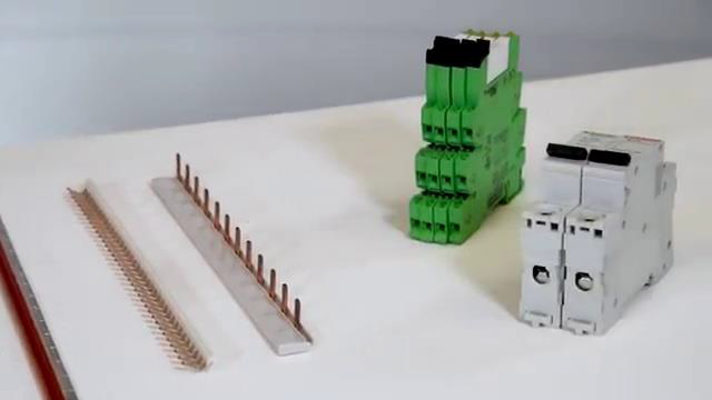 [1m:52s] and now I have a connection or continuity between these different terminal blocks. Obviously, in this case, I would cut off any excess so that I am only jumping the terminal blocks that I need to. So, for example, if we were using these terminals to distribute power, like we have shown in this particular industrial control cabinet where I have one wire distributing power to the many different circuit breakers, in this case, instead of running a power wire to each individual terminal block, I can run one power wire into one terminal block, which jumpers to the corresponding terminal blocks, which will allow me to distribute power to multiple devices with one input wire. So, remember with terminal block jumpers that we can modify, cut, and we must use the terminal block jumpers that are sized properly for the specific terminal blocks that we are using. Next, we're going to talk about jumpers that are specifically designed to be used with circuit breakers. As we have shown you a few times in this control panel, we have some jumpers that are being used with circuit breakers. Now, this particular jumper can also be used with terminal blocks, but we do have certain types of jumpers that are only designed to be used with certain types of circuit breakers. In this case, you can see there's a much larger jumper that is designed to be used with larger circuit breakers.