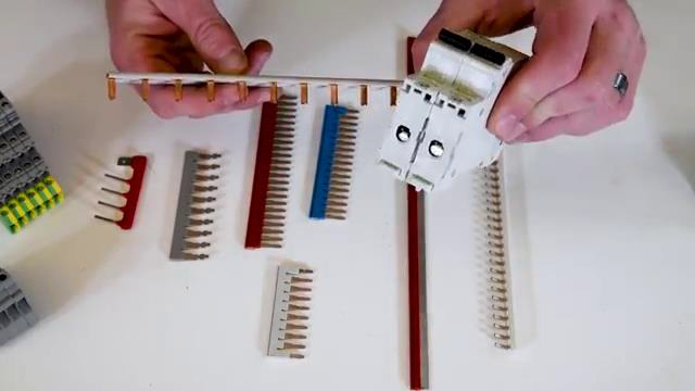 [3m:12s] Just like with our terminal block jumpers, we can modify these jumpers to cut them to length to fit our specific need. We can also cut out the individual jumper tines, if we want to skip one or two circuit breakers. This, again, also applies back to our terminal blocks. We can cut off each time to skip one or two or several circuit breakers or terminal blocks so the jumpers can be very easily modified. It is also a very good tip to make sure that we also mark on the jumper itself where the tines are actually going into the circuit breaker or terminal block.
