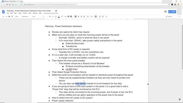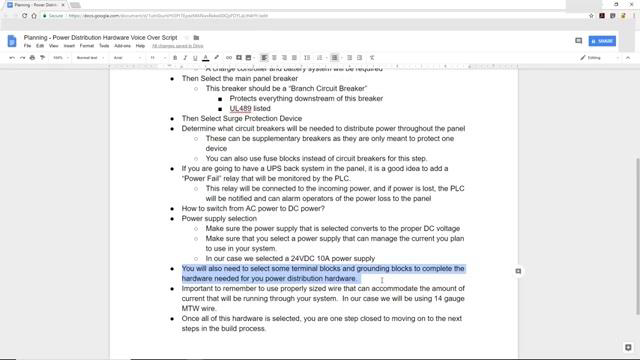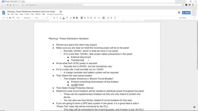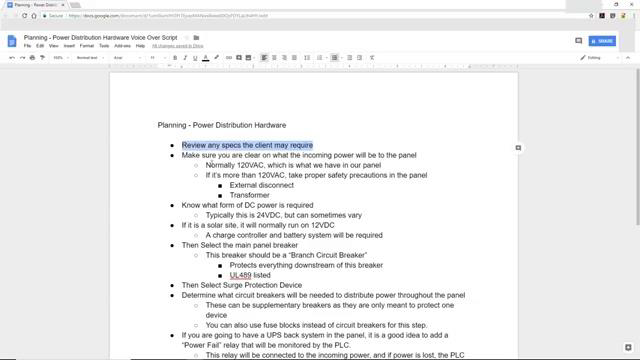 [1m:20s] selecting any hardware for our panel is to make sure that we review any specifications that the client may actually require for your specific job. So, we want to make sure, we review those specs. In this case we're going to review them for our power distribution hardware to make sure that the hardware we're selecting meet any requirements they might have.