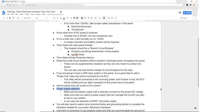[1m:56s] But, sometimes we do see a little bit more than 120 volts. If that's the case, if we happen to see 480 Volts, three phase, we need to make sure that we take proper safety precautions in our panel to account for this. This may mean putting in an external disconnect, a transformer to reduce that voltage down to something that's more manageable, and other necessary safety precautions when you're operating with that type of voltage. The next thing we want to look at is we want to understand what type of DC power is going to be required in our specific control panel.