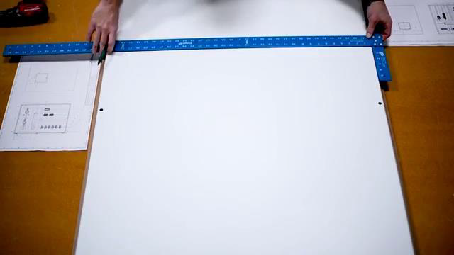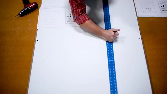 [1m:51s] Typically you will do this two times, for everything running horizontally on the panel, and then again for everything running vertically on the panel. Once the tick marks have been placed on the back plane, you can then go back and apply your lines. To do this simply take your framing square and line it up with your tick marks to draw your lines. Make sure that the line is easy to see to ensure the installation of the hardware goes smoothly.