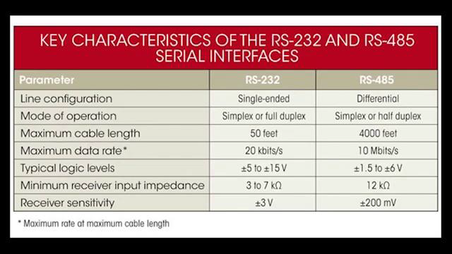 [4m:19s] In regards to speed RS 485 is much faster, with speed ranging anywhere from 100 kilobits all the way up to 10 megabits, whereas RS 232 maxes out at about 20 kilobits. The RS 485 standard is commonly used in a wide variety of automation systems, industrial control networks, and many other applications.