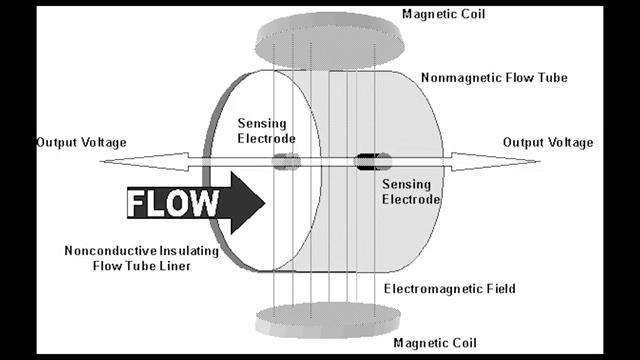 [2m:2s] When talking about a mag flow meter, it is important that whatever the substance is flowing through the pipe that it is actually a conductive substance. This conductive substance, commonly some kind of fluid, is what can assist the mag flow meter in reading voltage levels that are directly correlated to how much is flowing through the pipe.