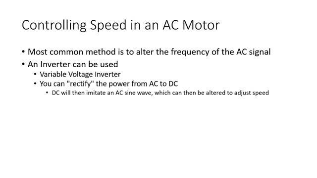 [2m:46s] Now let's talk about AC motors. There are a few ways in which you can control the speed of an AC motor, such as changing the number of poles, which can be very inefficient and is not as common,