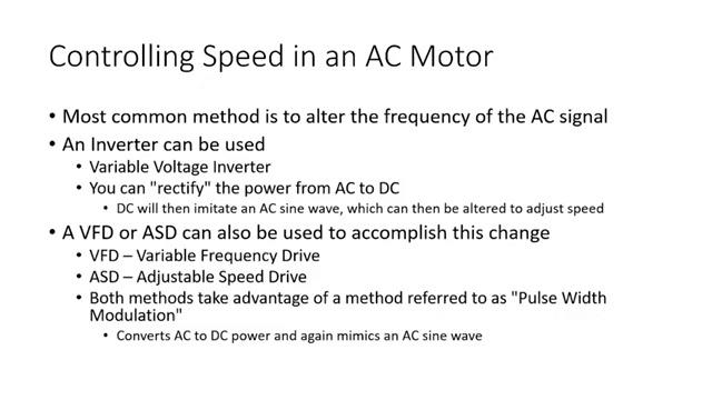 [4m:32s] There are other methods that can be used to adjust the speed of an AC motor which we will not cover in this video.