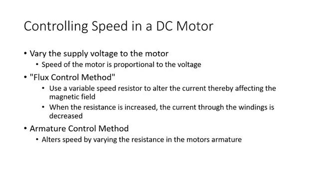 [1m:58s] Because of this reduced magnetic flux, we see the motor increase in speed. The last method that is commonly used is known as armature control method.