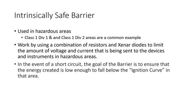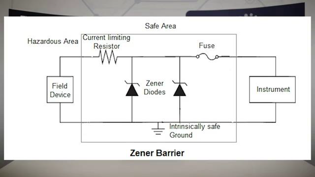 [2m:54s] Intrinsically safe barriers work by using a combination of resistors and Zener diode to limit the amount of voltage and current that is being sent to devices and instruments in these hazardous areas.
