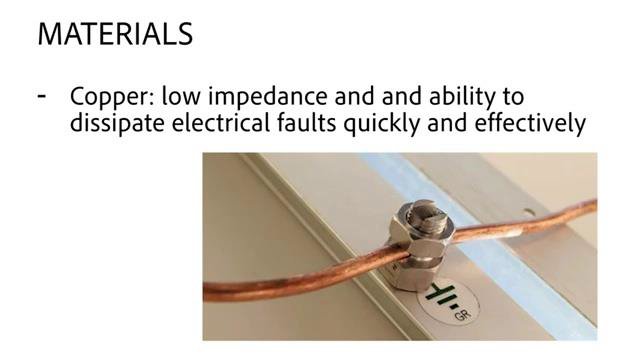 [1m:14s] The most common material in these types of systems is copper because of its low impedance and its ability to dissipate electrical faults quickly and effectively.