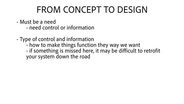 [2m:28s] Once the need is established, you can start to determine the next steps. Well, a very common thing to look at would be what type of control and information is actually needed.