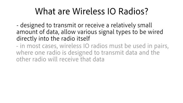 [1m:5s] Wireless IO radios are a great solution for situations where only a few signals need to be transmitted over a distance that is too far for wires to be run.