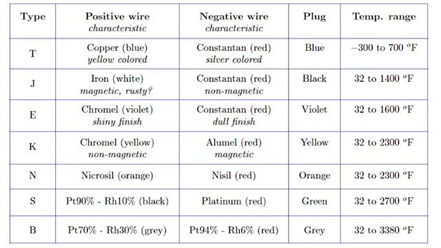 [2m:23s] Thermocouple voltage reference tables can be used to find out the temperature ranges based off of the type of thermocouple being used and the voltage that is being created.