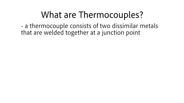[1m:6s] So what makes up a thermocouple? Simply put, a thermocouple consists of two dissimilar metals. These two different metals are welded together at one end, creating a junction between them.