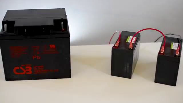 [1m:30s] In this case, we have a small battery with A-7-5 AMP hour rating. And we have a large battery with a 40 AMP hour rating.