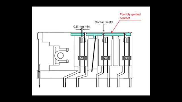 [4m:42s] One of the main differences and one of the defining characteristics of safety relays is the fact that they use force guided contacts.