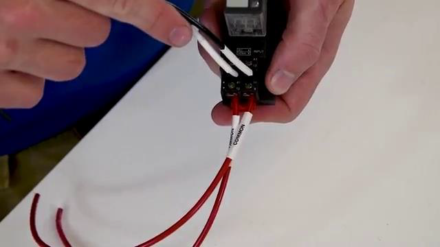 [1m:17s] The first thing we need to wire is the coil. In this case, we have a 120 Volt AC relay. So we need to provide AC power to our coil. In most relays, the coils are going to be labeled A one and A two. In an AC relay, this can be interchangeable. Let me show you how we make this connection. I first take my hot wire I'm going to terminate that into the A one portion of this relay.