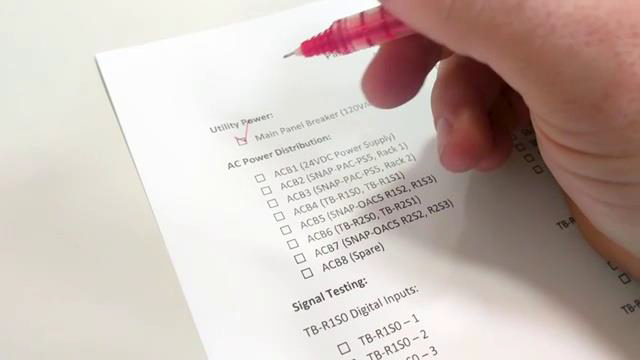 [4m:15s] how the HMI functions, because that's what the client's going to interface with is the HMI. So make sure that we plan for that. And then with that list that we created it's very, very critical that we create a testing document that records the result of each point or each step throughout the entire process. The testing document is simply going to be a checklist of everything that we go through, it's going to be power, and then all the different breakers, and the hardware, and every single signal, we're going to test every single signal in this panel, and we want to make sure that we check these off as we perform this test. If a customer's present it's a great idea to have a duplicate copy of this of this document of this checklist so that they can go through the checklist with us as we perform this test.