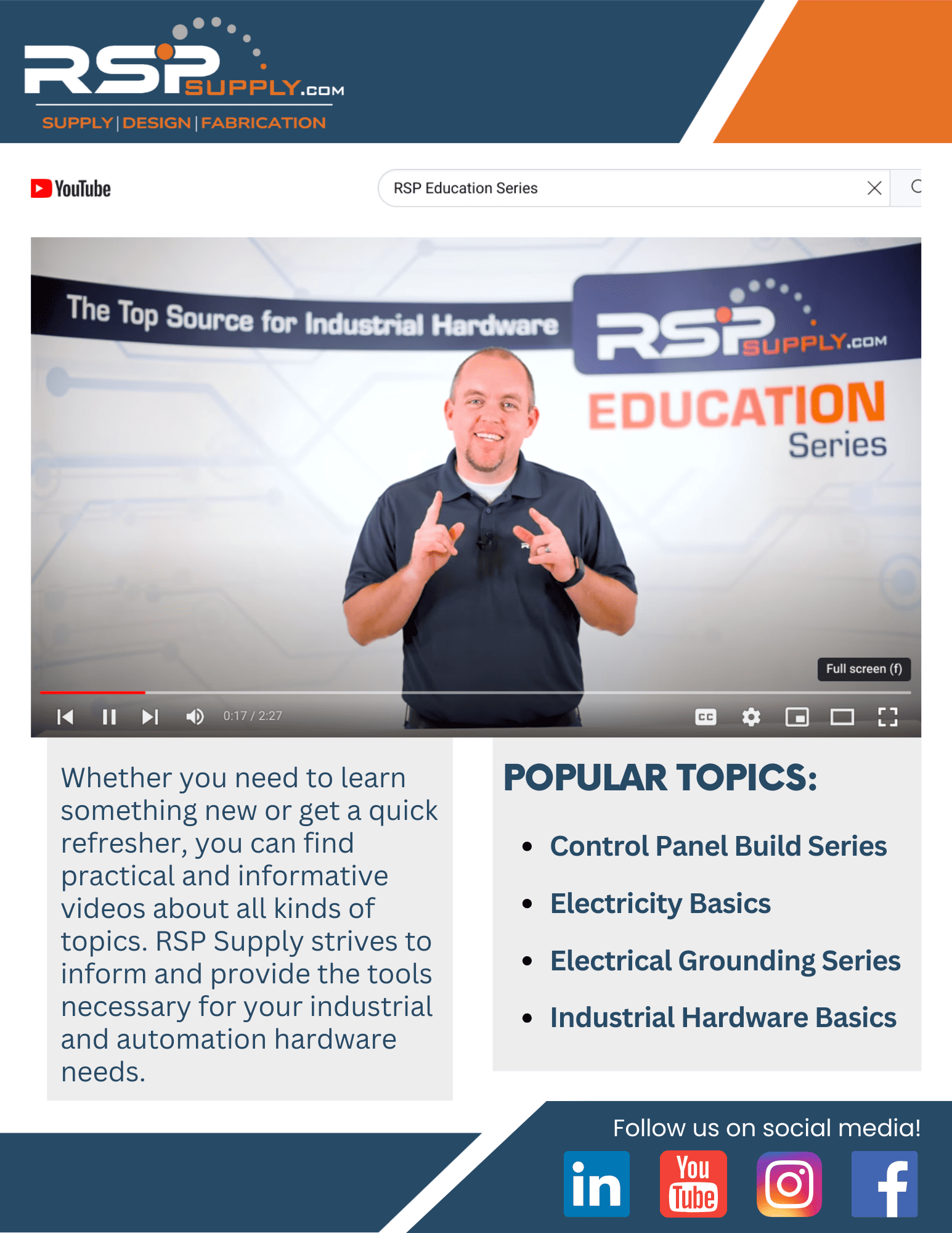 Education Channel: Whether you need to learn something new or get a quick refresher, you can find practical and informative videos about all kinds of topics. RSP Supply strives to inform and provide the tools necessary for your industrial and automation hardware needs.