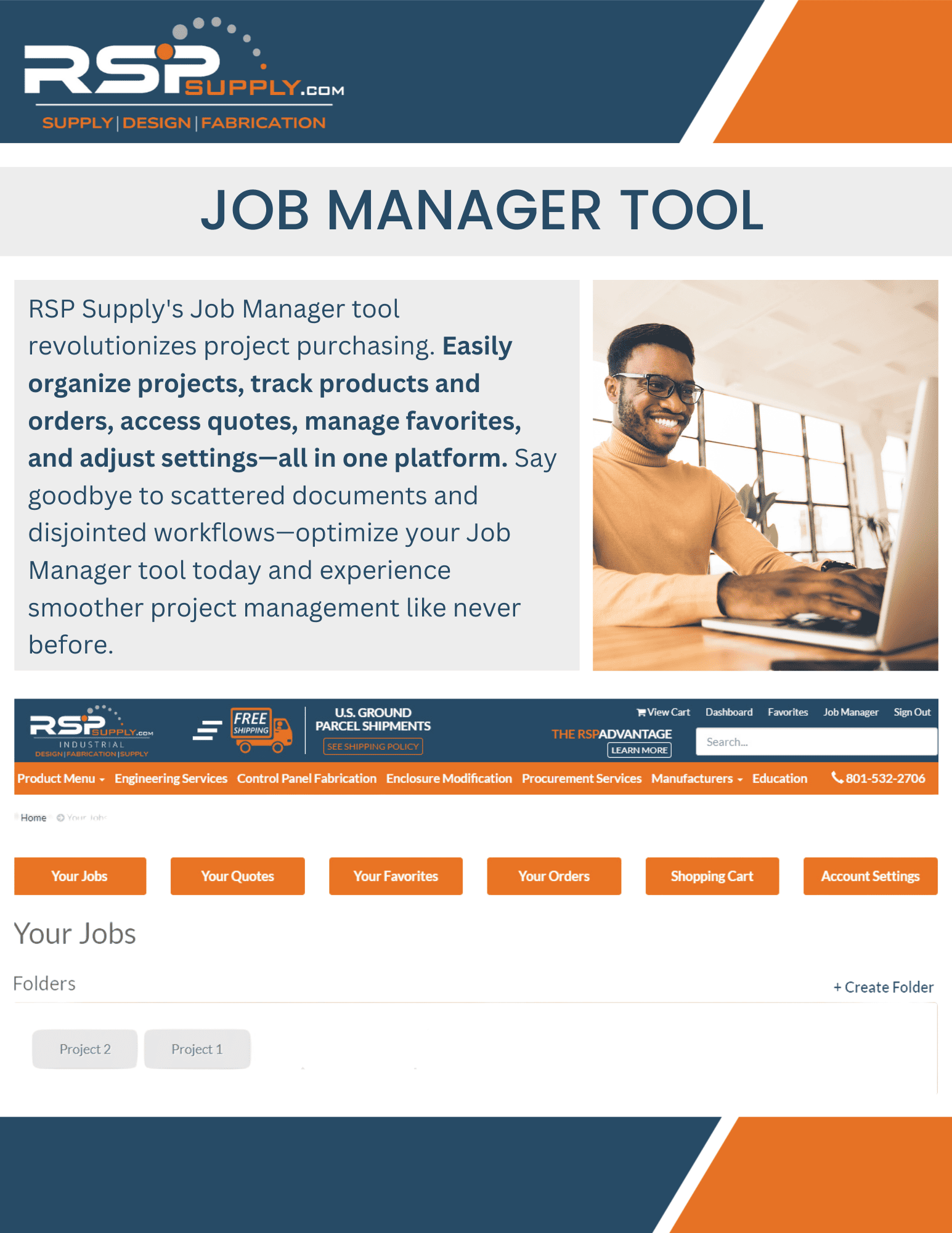 Job Manager Tool: RSP Supply's Job Manager tool revolutionizes project purchasing. Easily organize projects, track products and orders, access quotes, manage favorites, and adjust settings—all in one platform. Say goodbye to scattered documents and disjointed workflows—optimize your Job Manager tool today and experience smoother project management like never before.