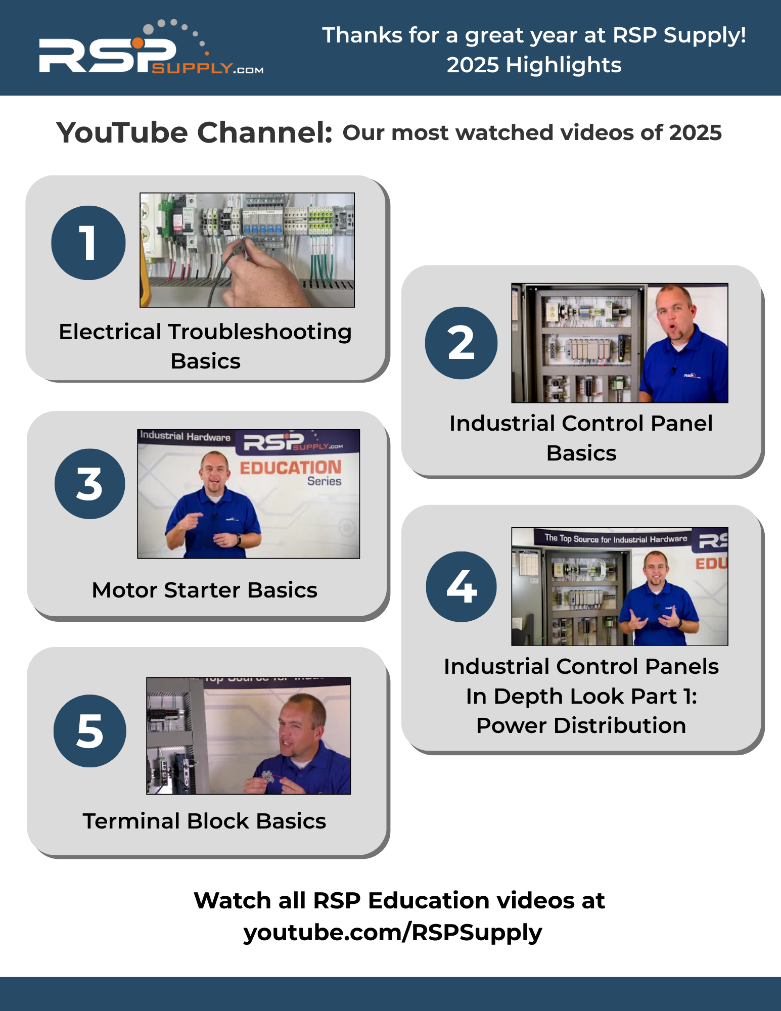 As we close out 2025, we’re excited to share some of the biggest moments from this past year at RSP Supply. In this month’s update, we’re highlighting Toshiba in our Manufacturer Spotlight, taking a look back at our most-watched YouTube videos of the year, and celebrating the new manufacturers who joined our lineup including Adalet, Appleton, Cyklop, Dottie, Killark, Omega, and USI Technologies. Thank you for being part of our growth in 2025.